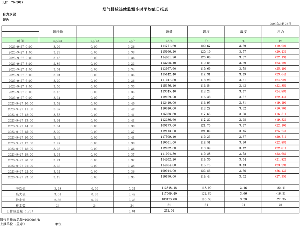 2023年9月份煙氣排放公示