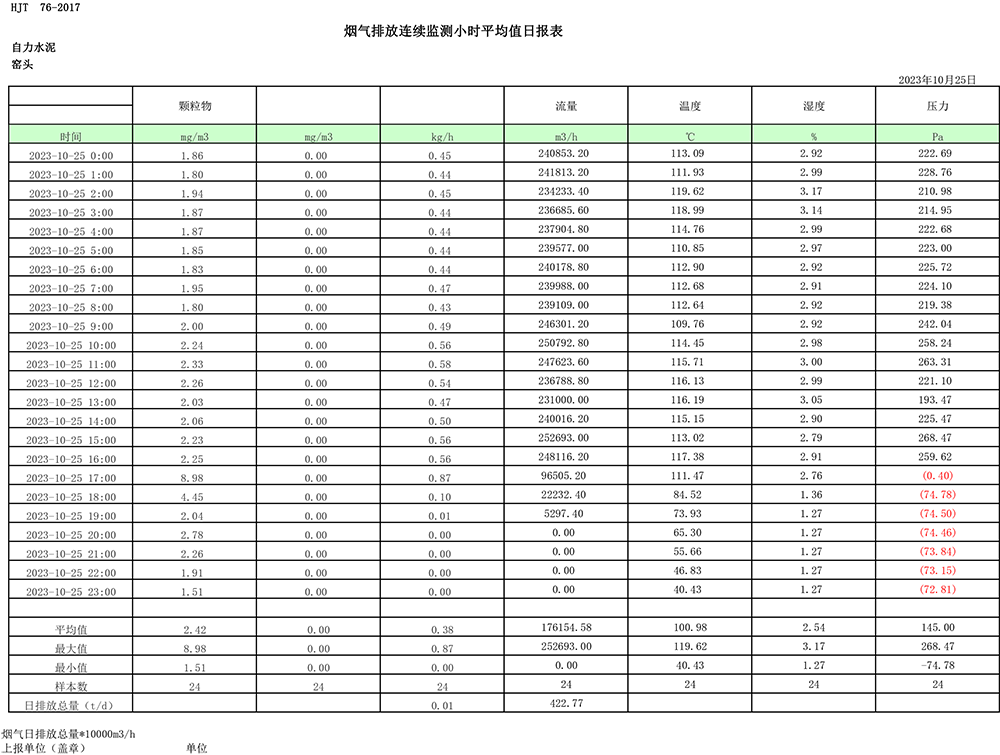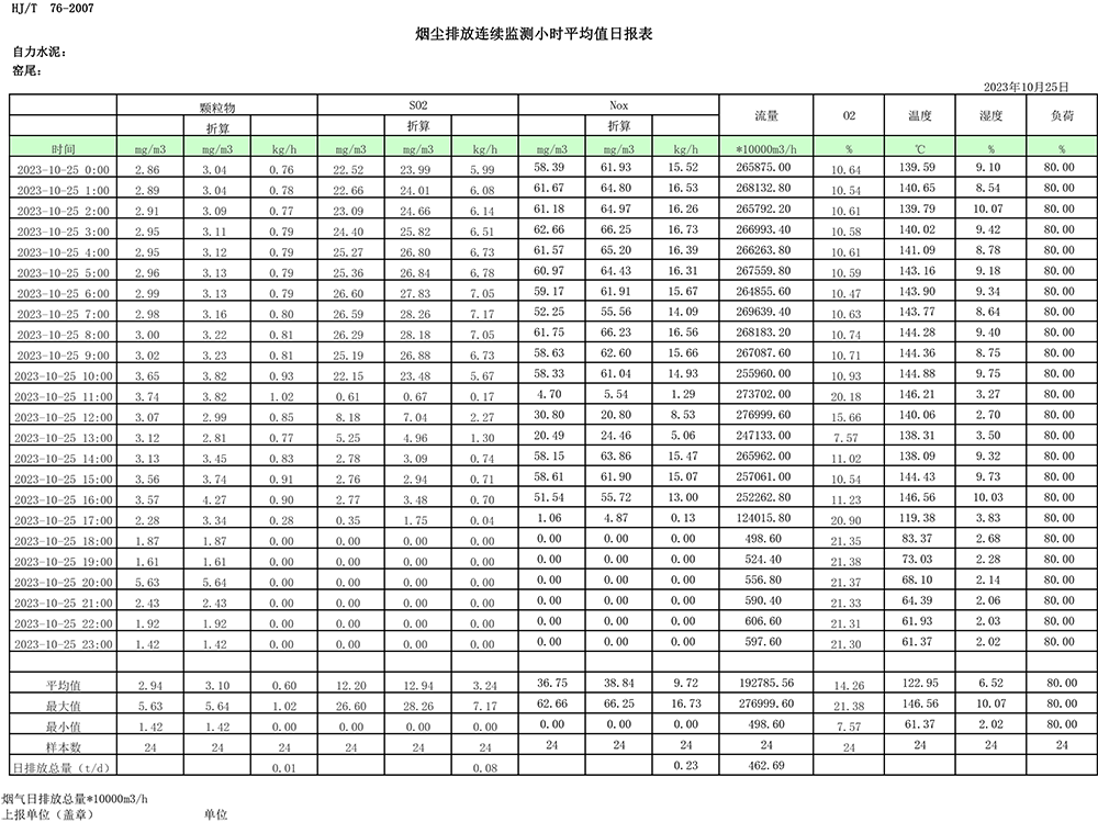 2023年10月份煙氣排放公示