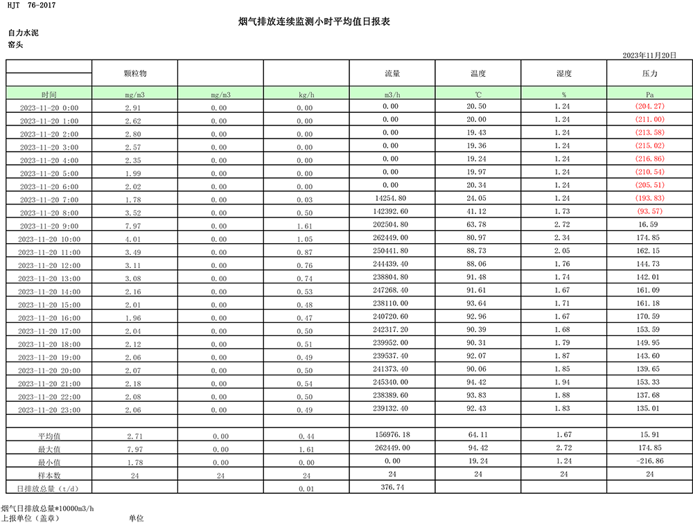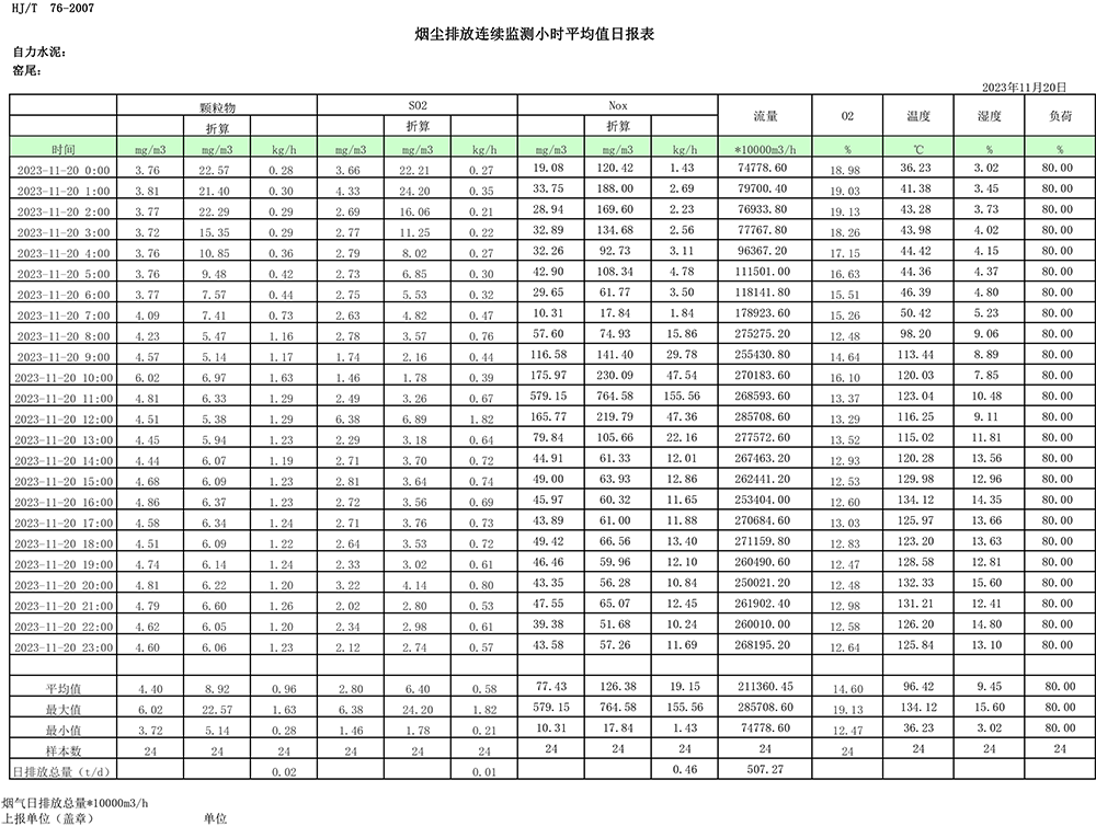2023年11月份煙氣排放公示