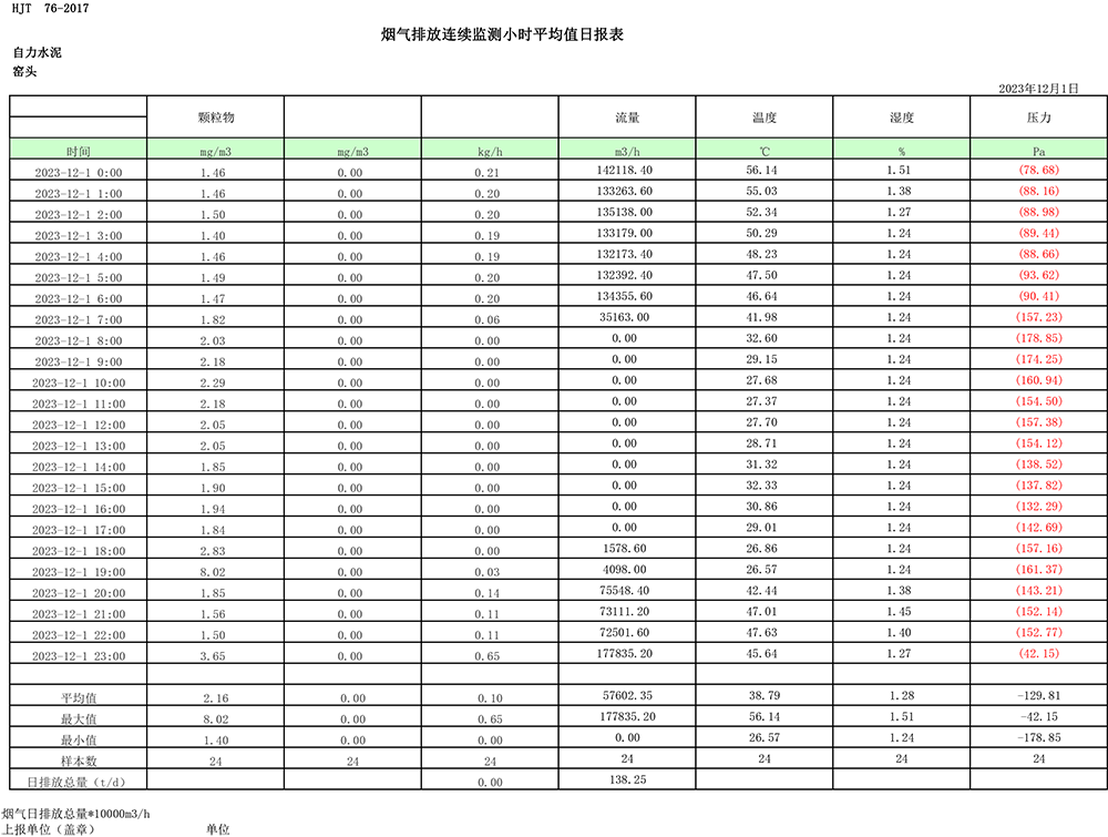 2023年12月份煙氣排放公示
