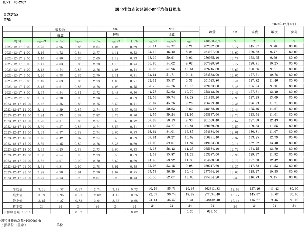 2023年12月份煙氣排放公示