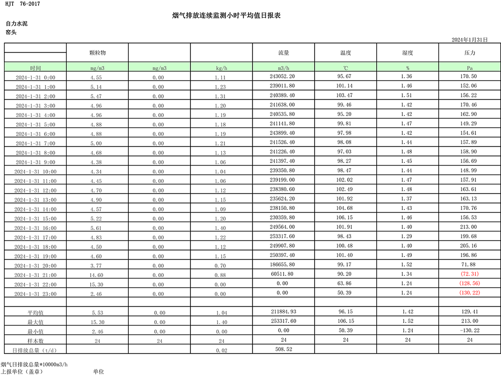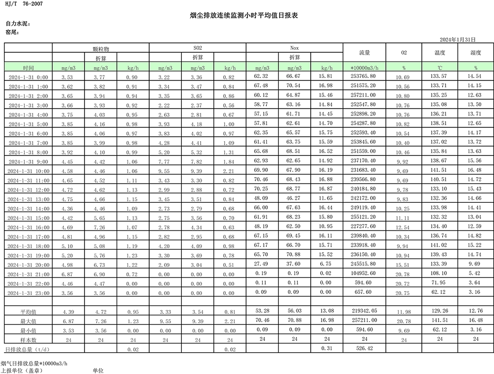 2024年1月份煙氣排放公示